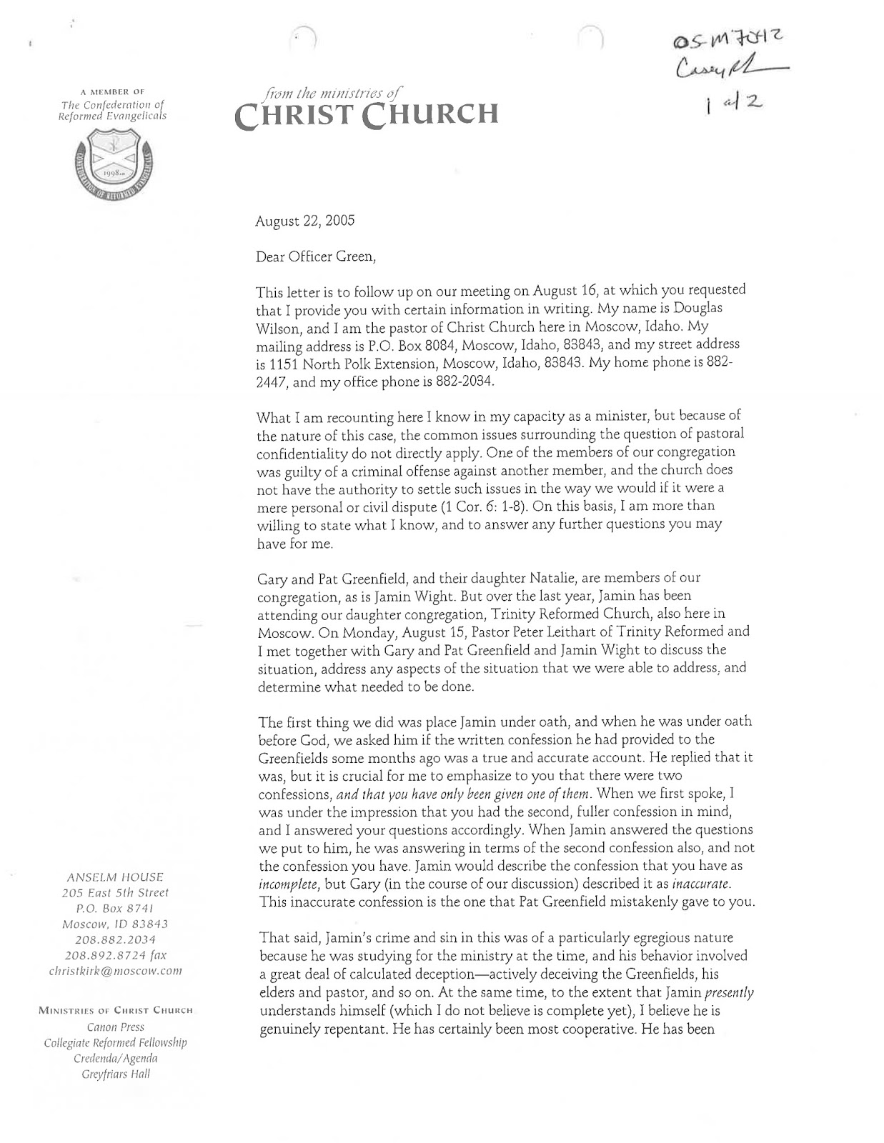 Doug Wilson: “I Do Not Believe That This Situation In Any Way Paints Jamin as a Sexual Predator”