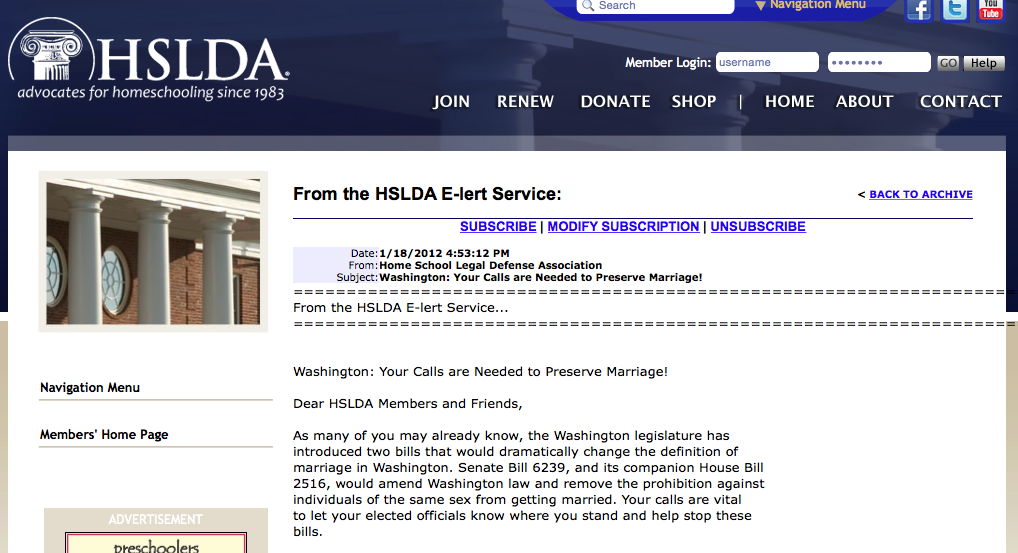 Also in this e-lert HSLDA once again explains why they oppose same-sex marriage: